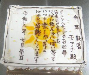 2:賞状タイプのケーキ(紋章込み)