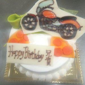 4:バイクイラスト&ピザイミテーション&黄緑リボン